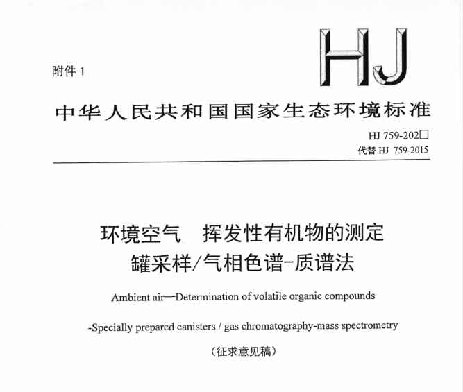 • 《環境空氣 揮發性有機物的測定 罐采樣/氣相色譜-質譜法》迎 2021-03-19